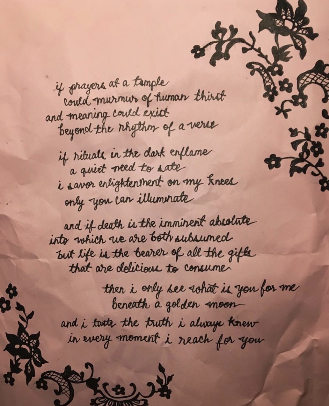 LK: I’ve written poetry behind my canvases on certain occasions, but it isn’t something I do very often. Maybe it’s time for another poetry session, actually…