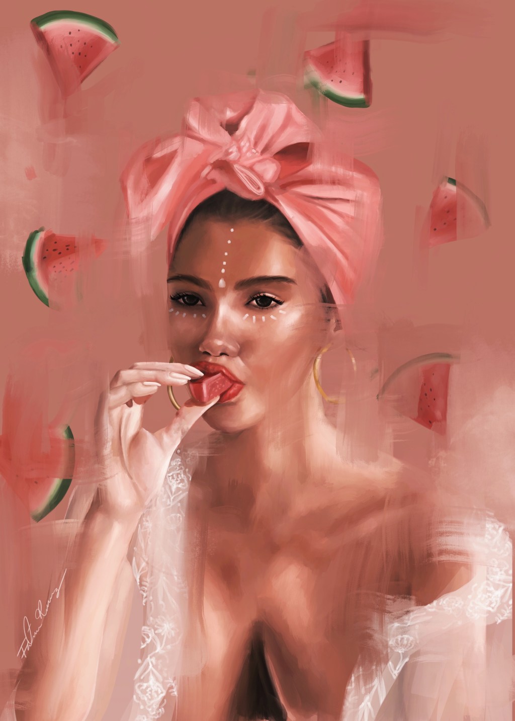 FK: Definitely. I still love classical painting and would absolutely love to create more classical art, but for now I focus on digital art. I do try to make my art resemble classical oil paintings as much as I can but also keep a digital touch to it so I’d say I have a very painterly and expressive style. For example my latest illustration took a total of 17 hours and had 25.000 brush strokes so I spend a lot of time layering brush strokes on top of each other to make it look hand painted! I draw in procreate like I would do anything in real life.